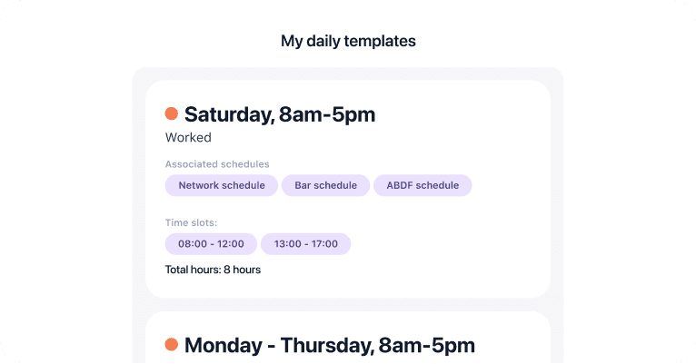 The scheduling of timetables allows HR managers to create customized schedules tailored to the specific needs of each team, department, or service. Managers can define them by team, time slots, color codes, or other relevant criteria. By providing optimal resource management, you increase productivity and improve flexibility within your company.