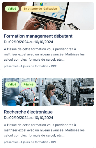 Le catalogue de formation en ligne permet à vos collaborateurs une solution pratique et intuitive pour choisir les formations qui correspondent à leurs besoins. Ils peuvent explorer une large sélection de programmes adaptés à leurs services, développer leurs compétences professionnels spécifiques. Cet outil facilite ainsi leur montée en compétences tout en renforçant leur engagement dans leur parcours de développement.