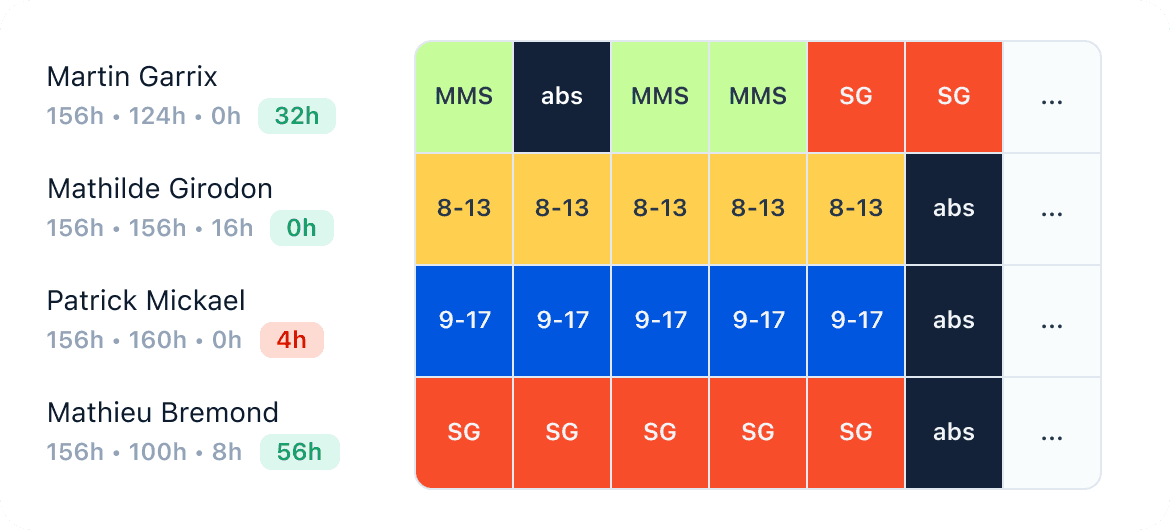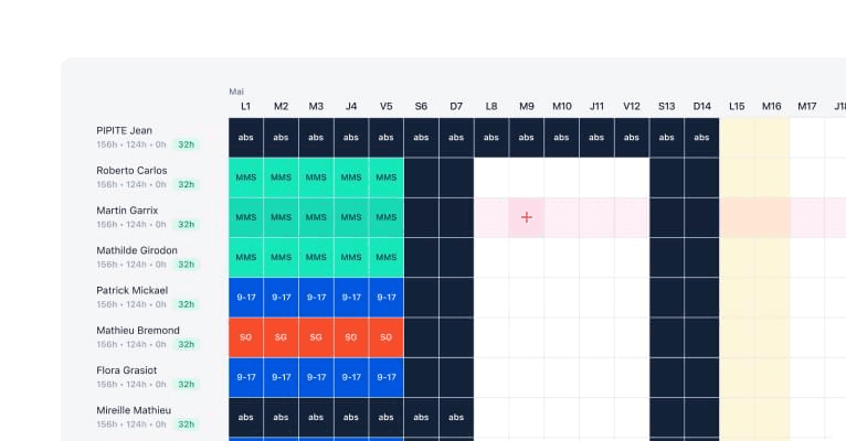 Notre logiciel de gestion des plannings offre aux RH un outil proactif pour planifier de manière claire et anticipée les responsabilités de chaque membre de l'équipe. Optimisez l’organisation du temps, des priorités et des ressources en augmentant la productivité.